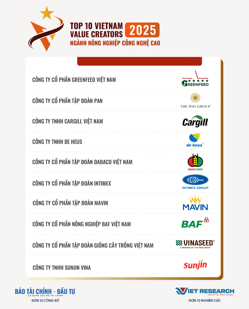 CÔNG BỐ TOP 10 DOANH NGHIỆP TẠO GIÁ TRỊ HÀNG ĐẦU VIỆT NAM NĂM 2025 – NGÀNH NÔNG NGHIỆP CÔNG NGHỆ CAO