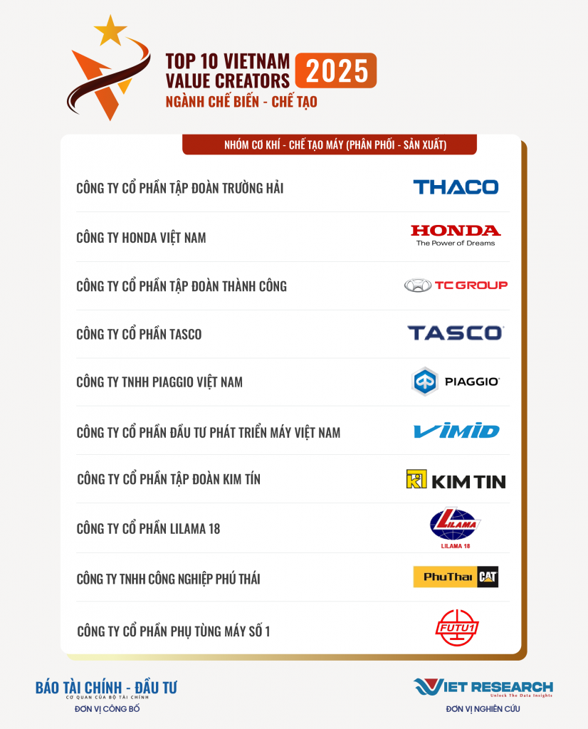 CÔNG BỐ TOP 10 DOANH NGHIỆP TẠO GIÁ TRỊ HÀNG ĐẦU VIỆT NAM 2025 – NGÀNH CHẾ BIẾN – CHẾ TẠO