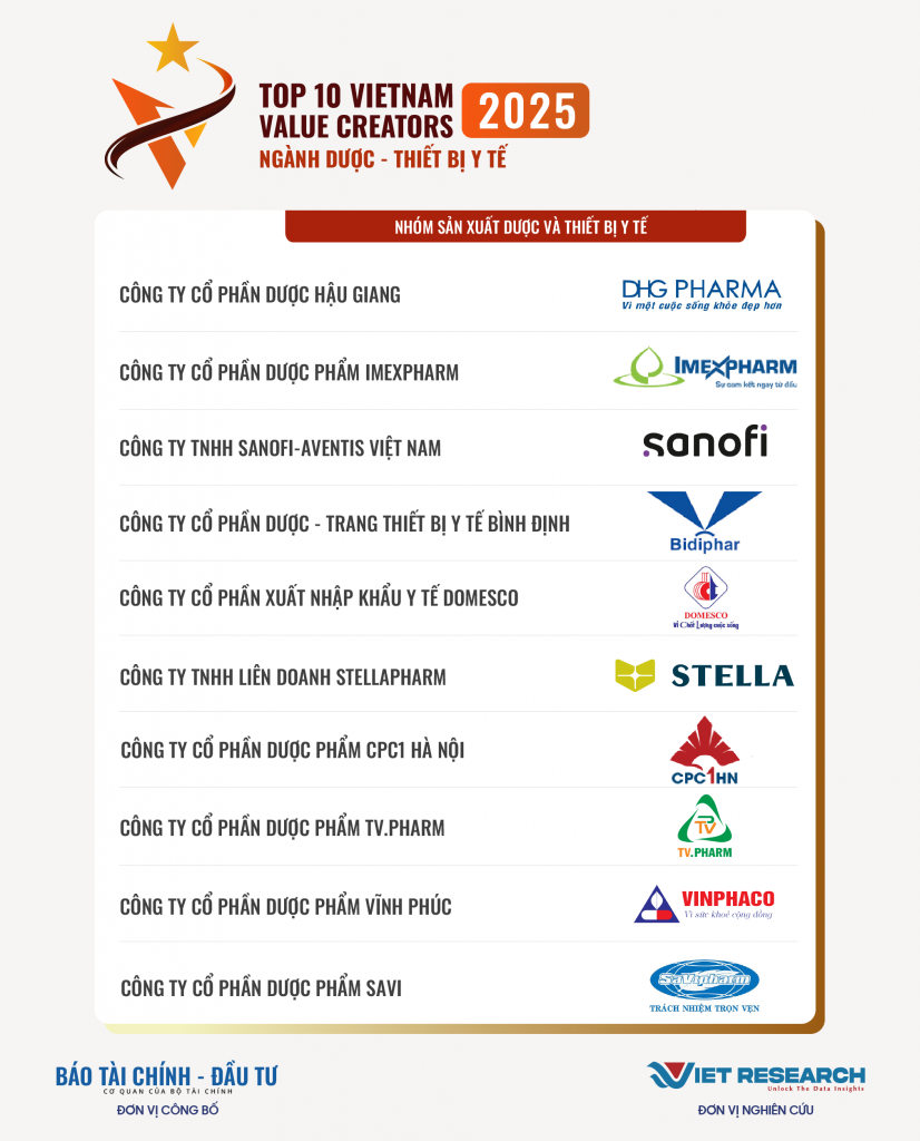 CÔNG BỐ TOP 10 DOANH NGHIỆP TẠO GIÁ TRỊ HÀNG ĐẦU VIỆT NAM 2025 – NGÀNH DƯỢC – THIẾT BỊ Y TẾ