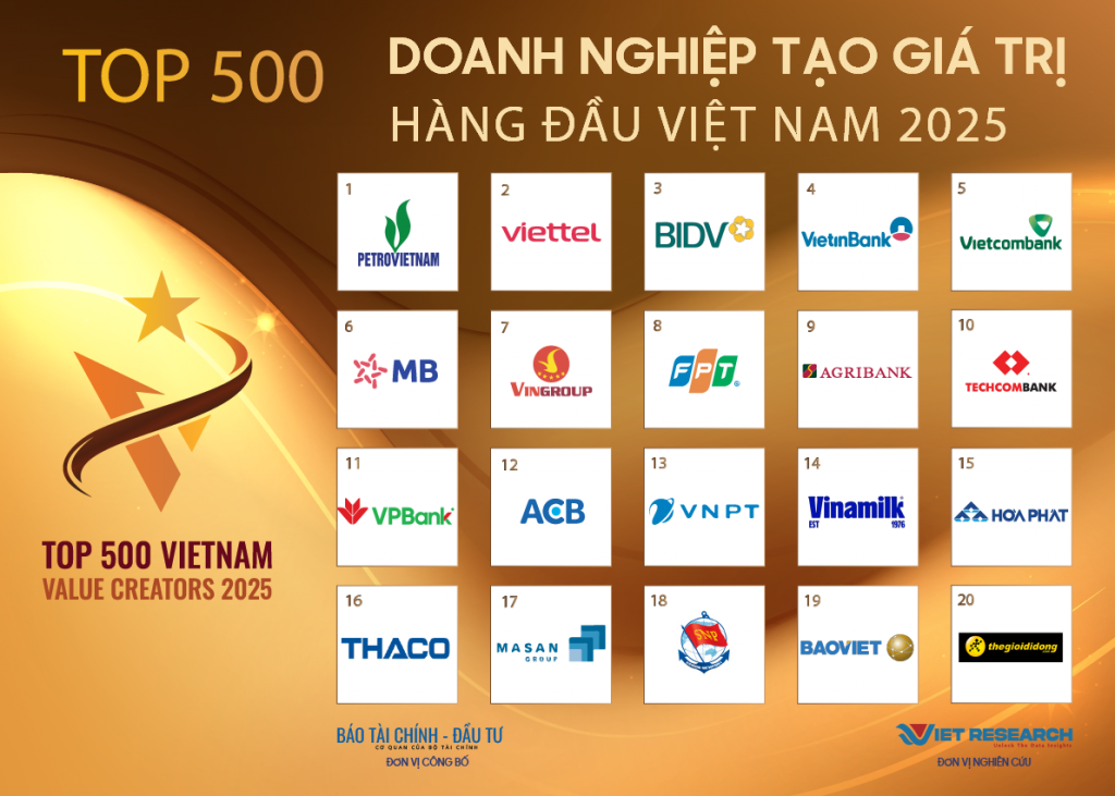 CÔNG BỐ TOP 500 DOANH NGHIỆP TẠO GIÁ TRỊ HÀNG ĐẦU VIỆT NAM 2025