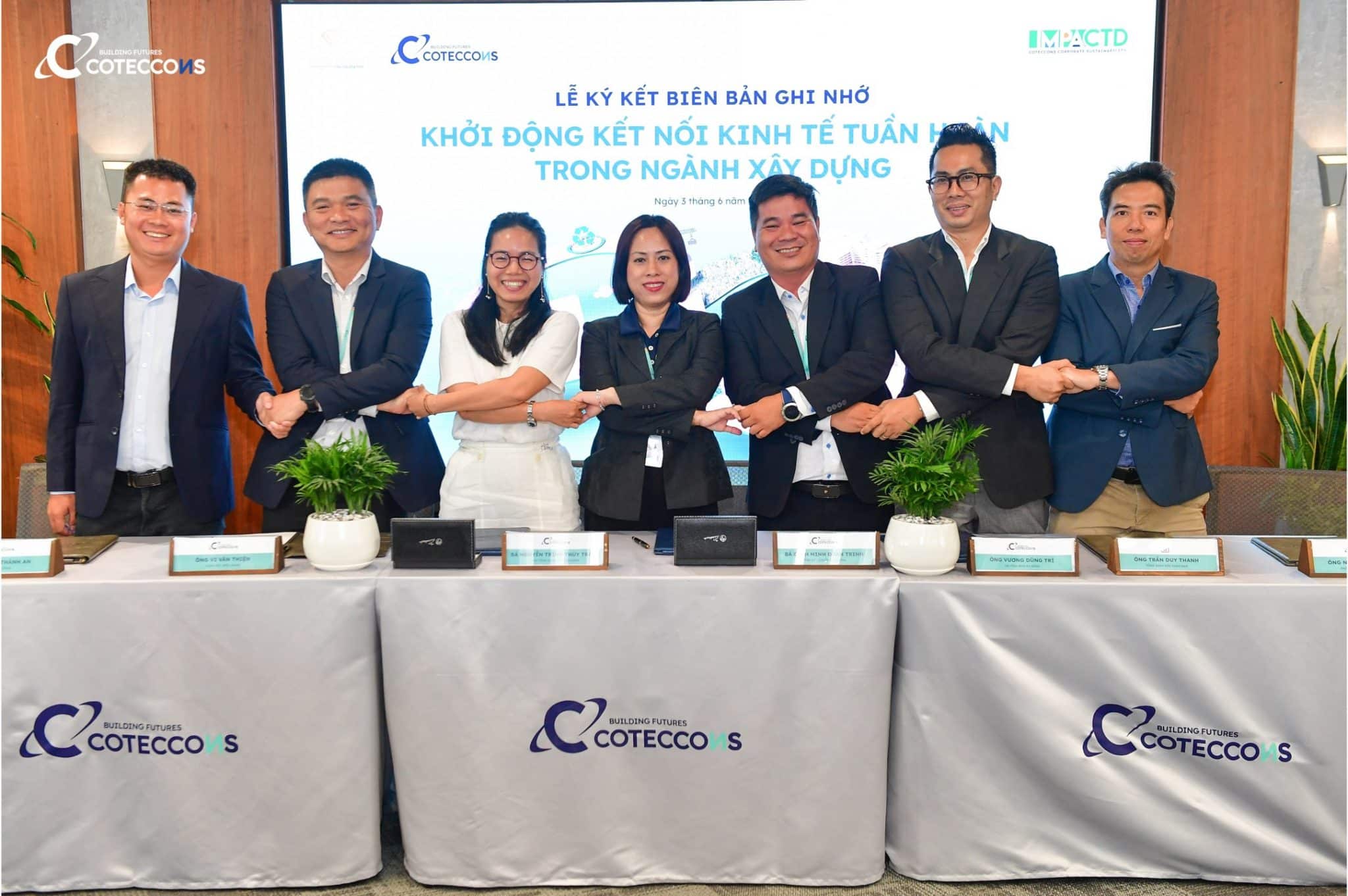 Để triển khai mô hình này, Coteccons đã ký kết biên bản ghi nhớ hợp tác (MoU) với nhiều đối tác trong lĩnh vực tái chế và quản lý chất thải, bao gồm các doanh nghiệp môi trường, đơn vị cung cấp vật liệu xanh, và tổ chức nghiên cứu công nghệ xử lý chất thải xây dựng. Mục tiêu chung là hình thành hệ sinh thái tuần hoàn – nơi phế thải của dự án này trở thành nguyên liệu cho dự án khác. Đây cũng là lần đầu tiên một doanh nghiệp xây dựng Việt Nam xây dựng mô hình “liên kết chuỗi giá trị xanh” quy mô lớn, thay vì chỉ thực hiện các hoạt động xử lý rời rạc. Lãnh đạo công ty khẳng định, chiến lược này sẽ được nhân rộng cho toàn bộ các công trình Coteccons thi công trong giai đoạn 2025–2030, đồng thời kỳ vọng lan tỏa sang các nhà thầu, chủ đầu tư và đối tác trong ngành.