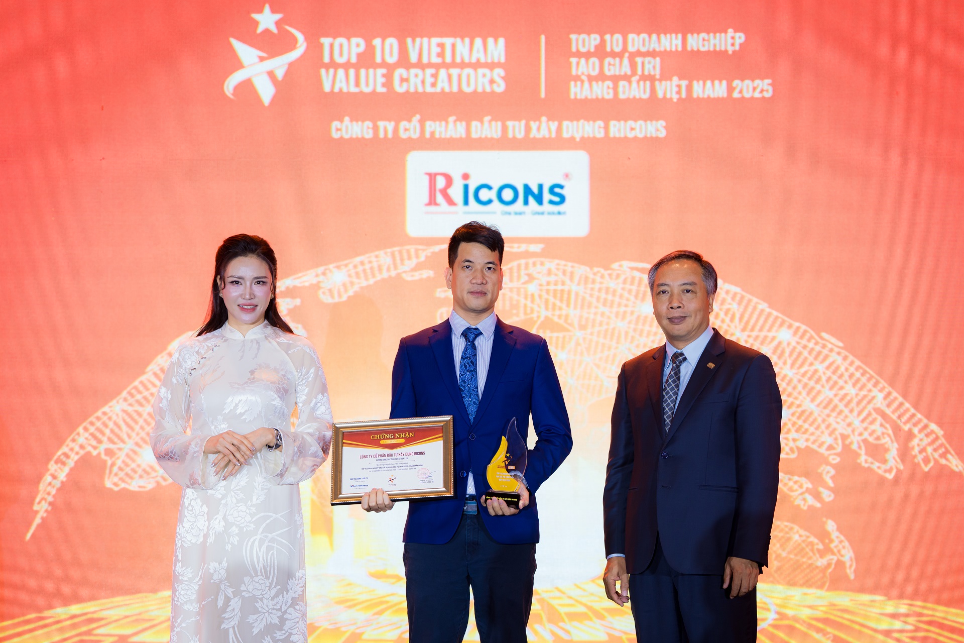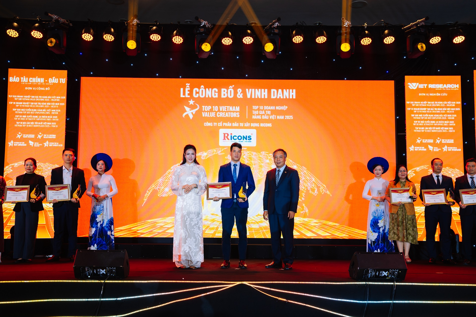 Ngày 26/12/2025, trong chương trình “Lễ công bố Bảng xếp hạng Top 10 Doanh nghiệp tạo giá trị hàng đầu Việt Nam (VALUE10)” do Viet Research phối hợp với Báo Tài chính – Đầu tư (Bộ Tài chính) tổ chức, Ricons đã tự hào được vinh danh giải thưởng: